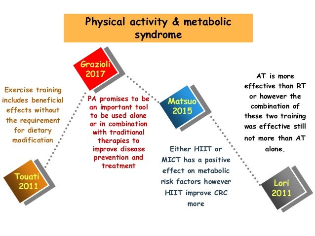 Exercise and the metabolic syndrome J. Exp Physiol 102 17161728. Exercise and Metabolic Syndrome The researchers split participants into four groups. Exercise is effective in improving each one of the components of metabolic syndrome. According to Gochnour Strength training and intense aerobic. Low amount of moderate exercise equivalent to walking about 12. Lifestyle interventions consisting of increased physical activity and caloric restriction have been shown to improve both metabolic and reproductive outcomes.